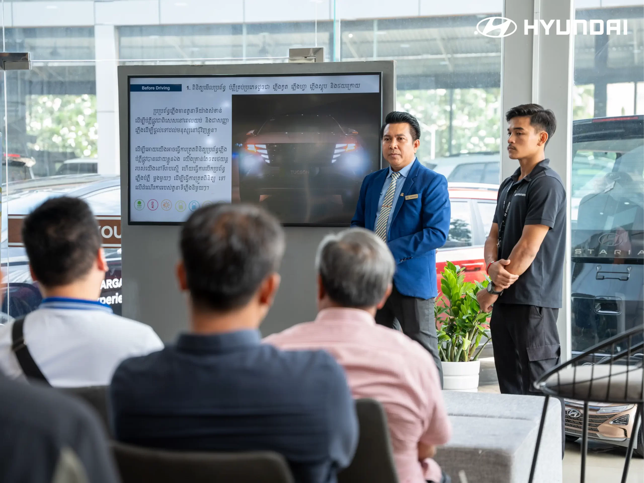 The event featured an informative presentation with slides highlighting Hyundai’s advanced maintenance standards, the importance of preventative care, and tips for extending vehicle lifespan. The presentation created an interactive learning space where customers could ask questions and receive practical advice from experts.