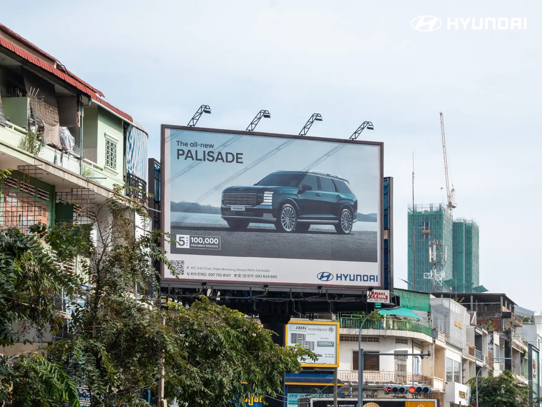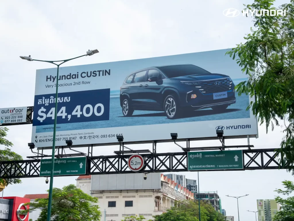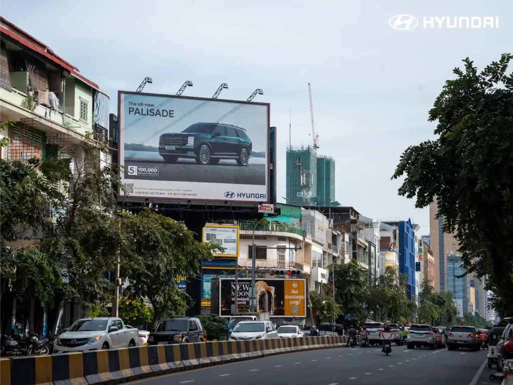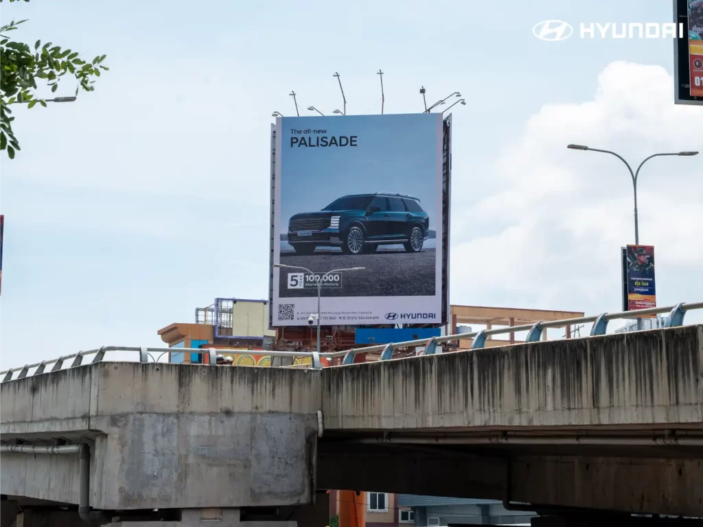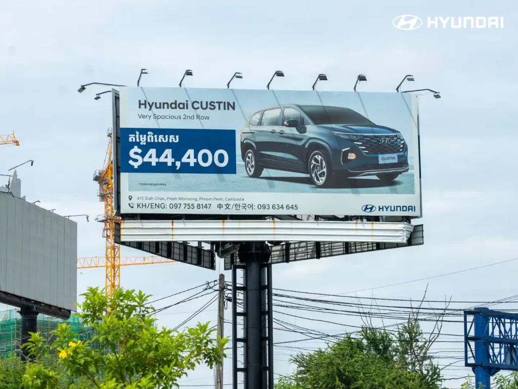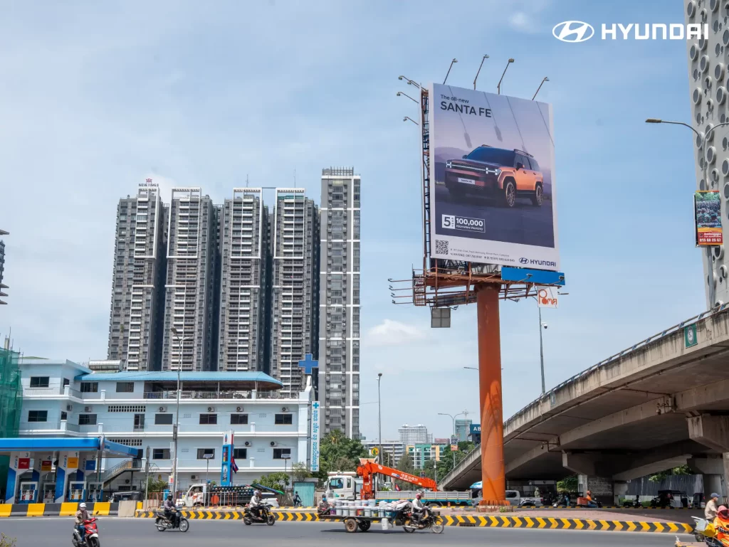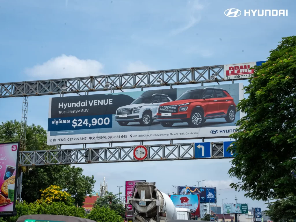 These billboards serve as a firsthand information for every traveller. They are an open invitation for customers to visit Hyundai’s showrooms across Cambodia including Hyundai Monivong Showroom, Hyundai City Store Showroom and Hyundai Siem Reap Showroom.